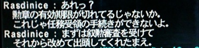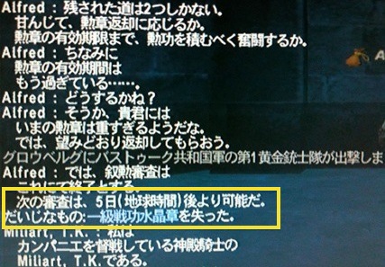 急いで勲章審査のNPCのところに行き、一個勲章を剥奪されながらも